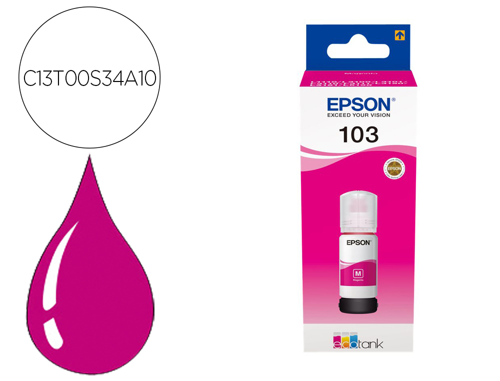 Tinta epson ecotank 102 et-2700 / 2750 / 3700 / 3750 / 4750 bote de 70 ml amarillo 6.000 pag